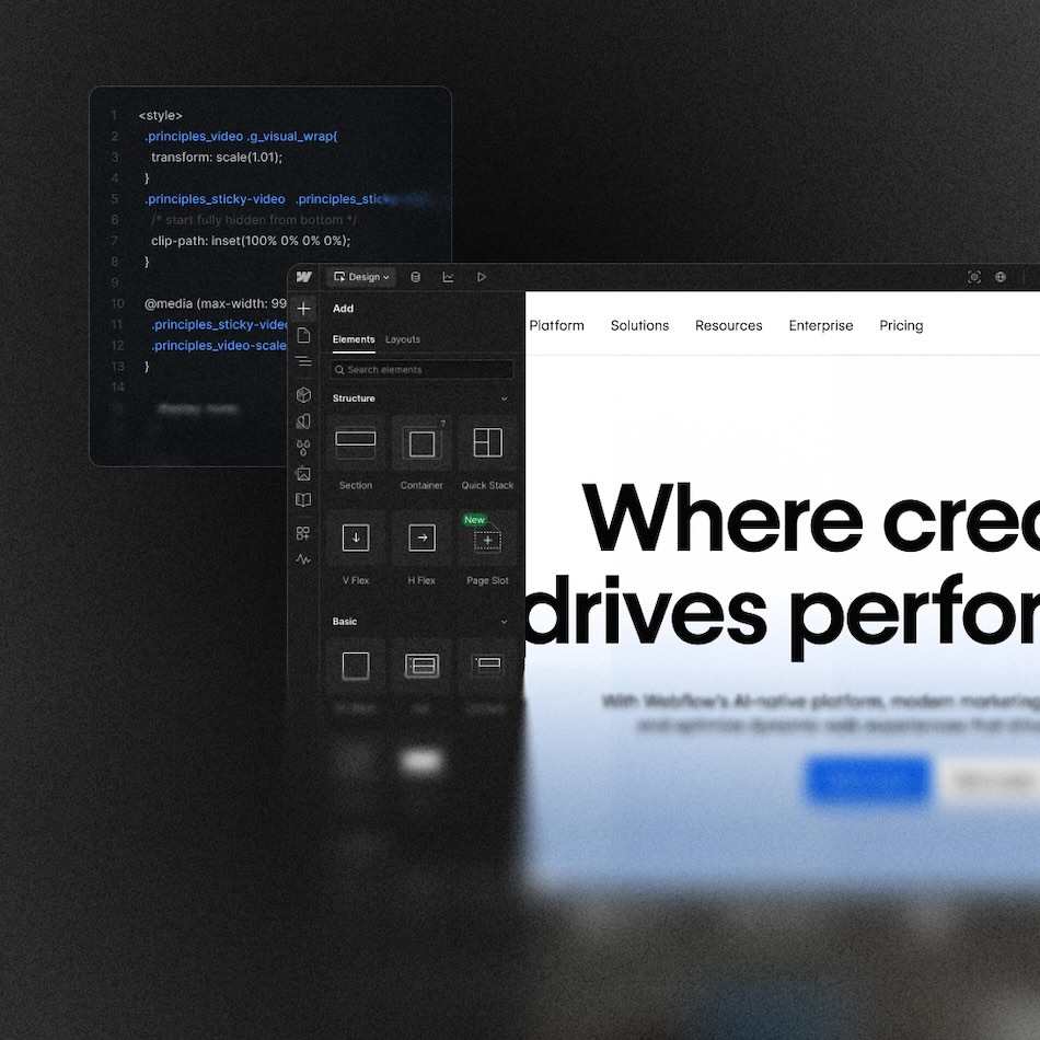We can support you by building landing pages, full websites, e-commerce projects, interactions, optimize for responsiveness, integrate any CMS you want, maintain your website and add custom code to your Webflow.